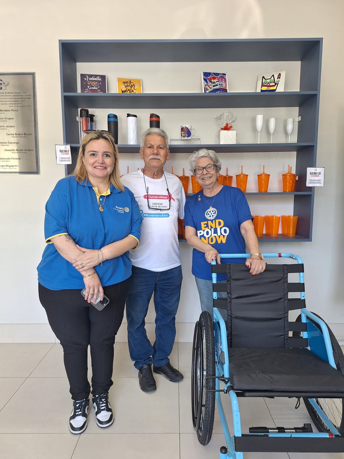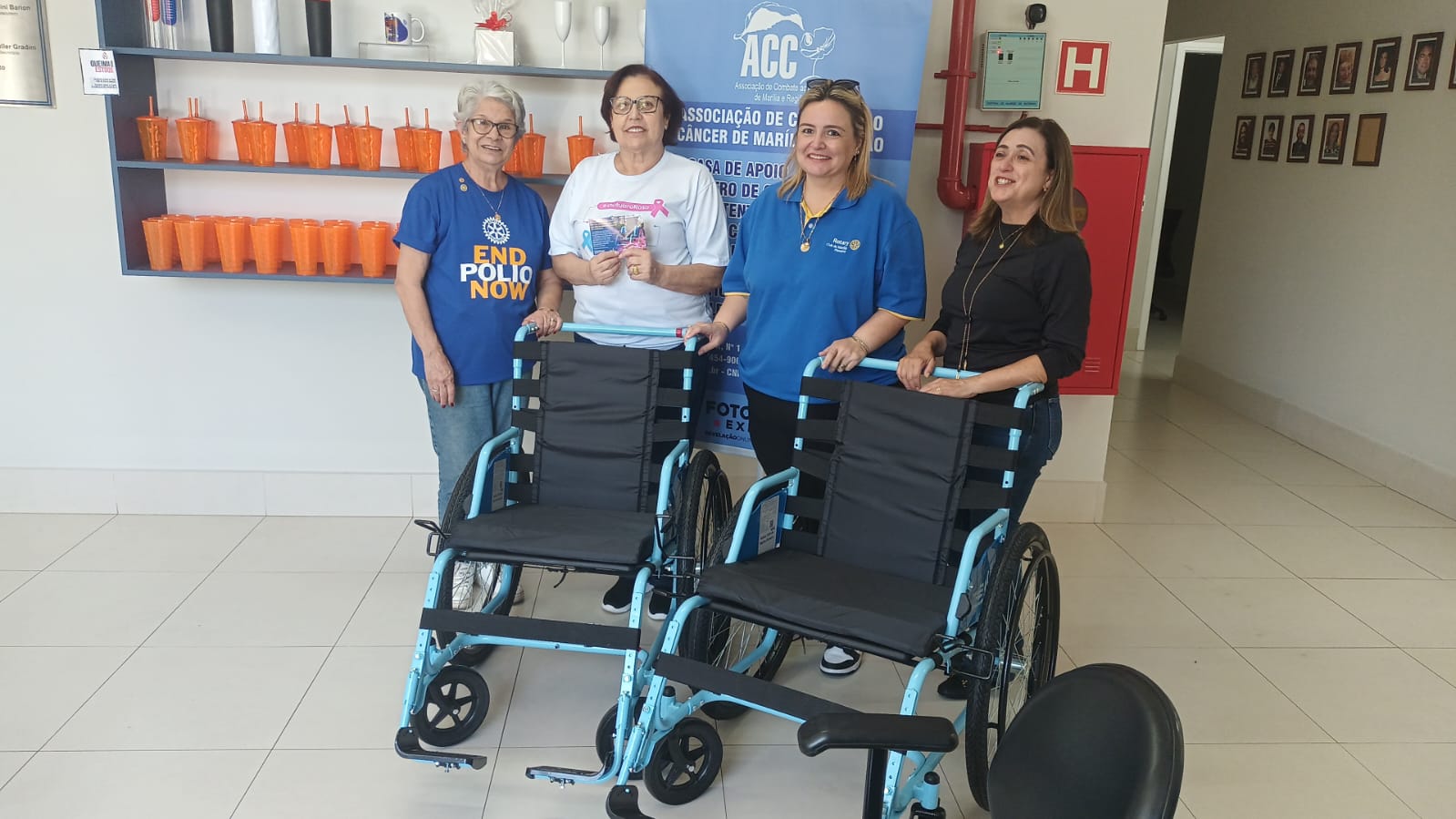 Neste dia 22, mês da prevenção do câncer  de mama, Outubro Rosa, recebemos em visita na nossa sede, as senhoras Cimara Lovatto e Sônia Coelho representantes do Rotary Pioneiro de Marília para entrega em doação de 2 (duas) modernas cadeiras de rodas pelo Programa Mobilidade Para Todos, o Free Wheelchair Mission que ora nos beneficia, bem como está beneficiando centenas de outras entidades pelo mundo! Nossa eterna gratidão! ♥