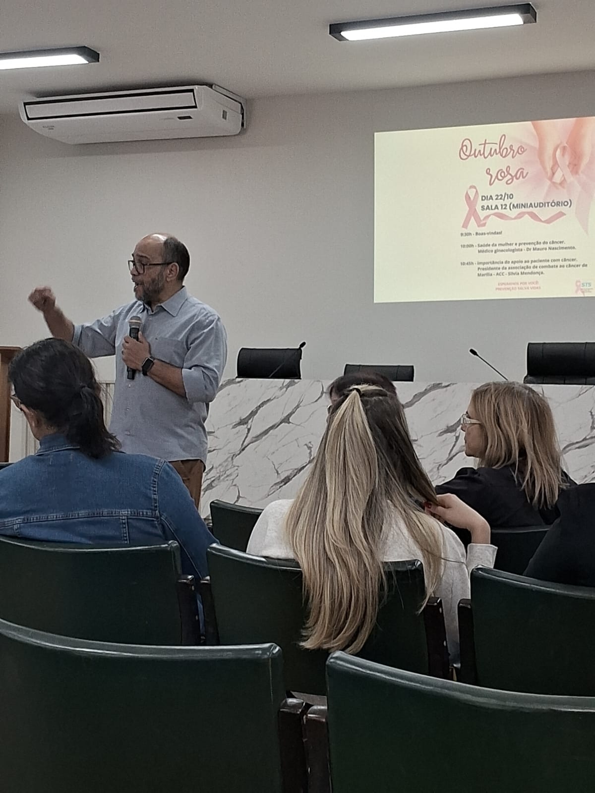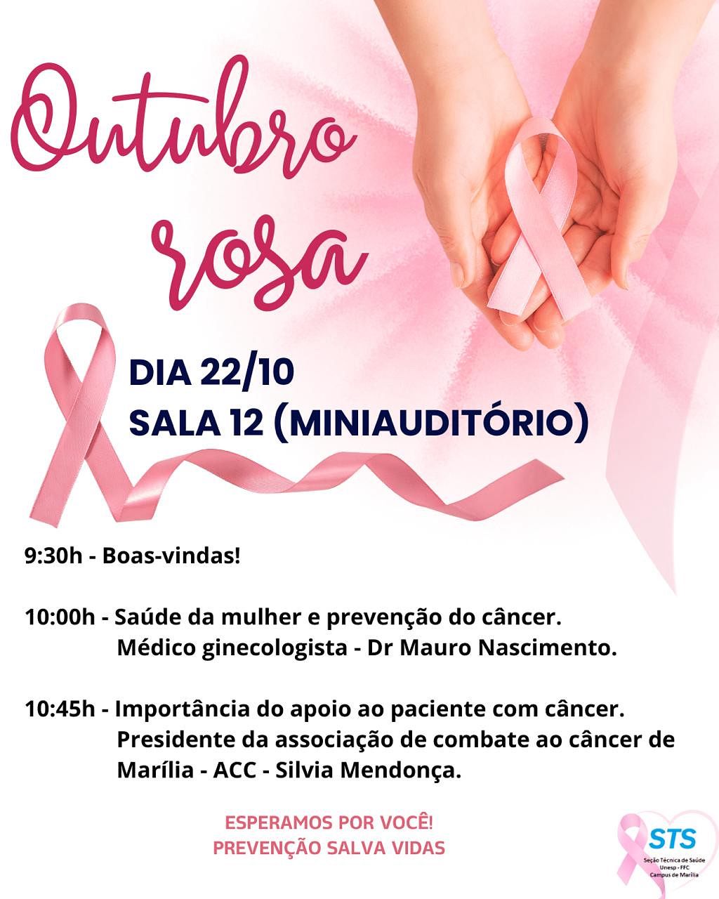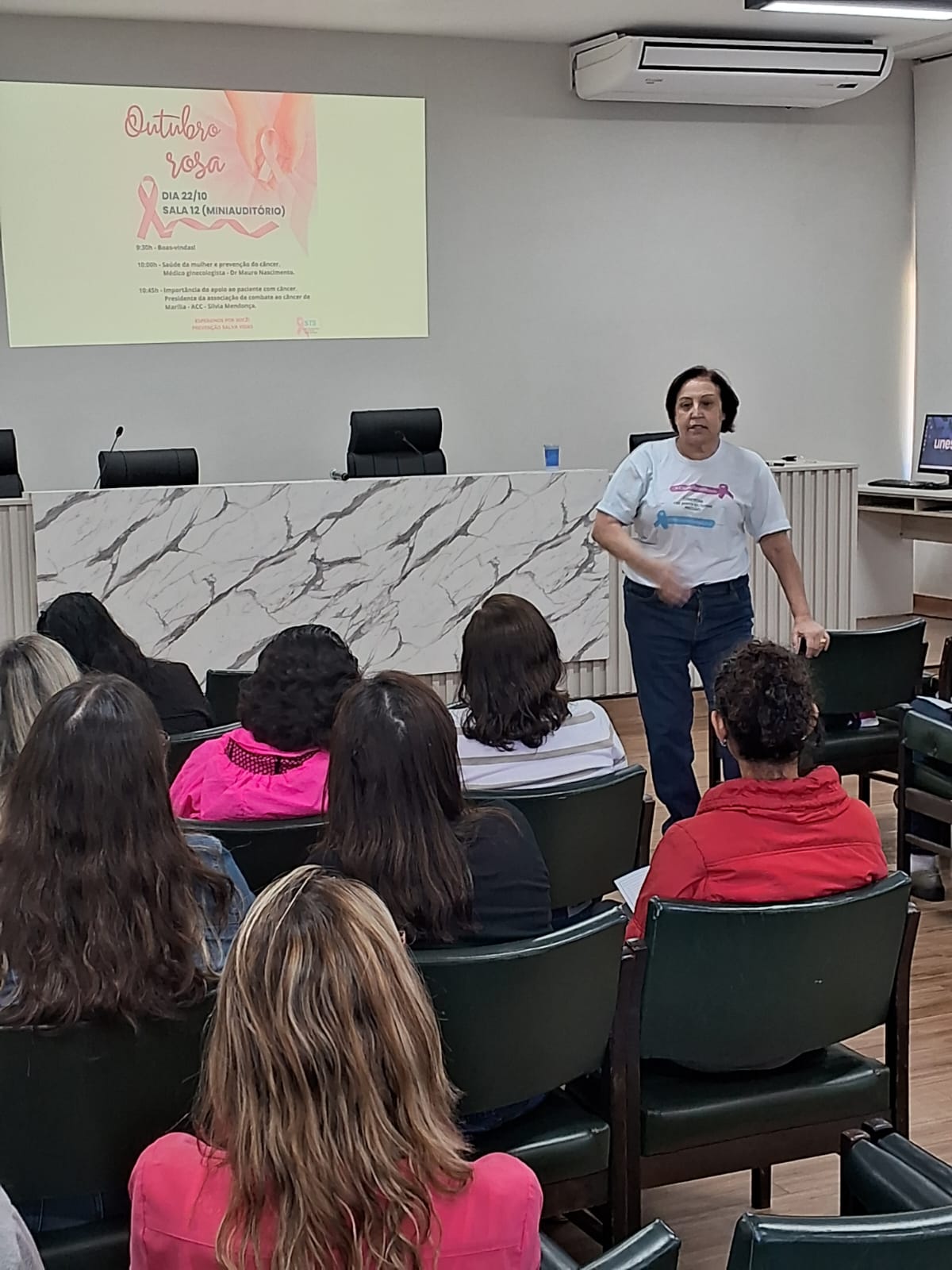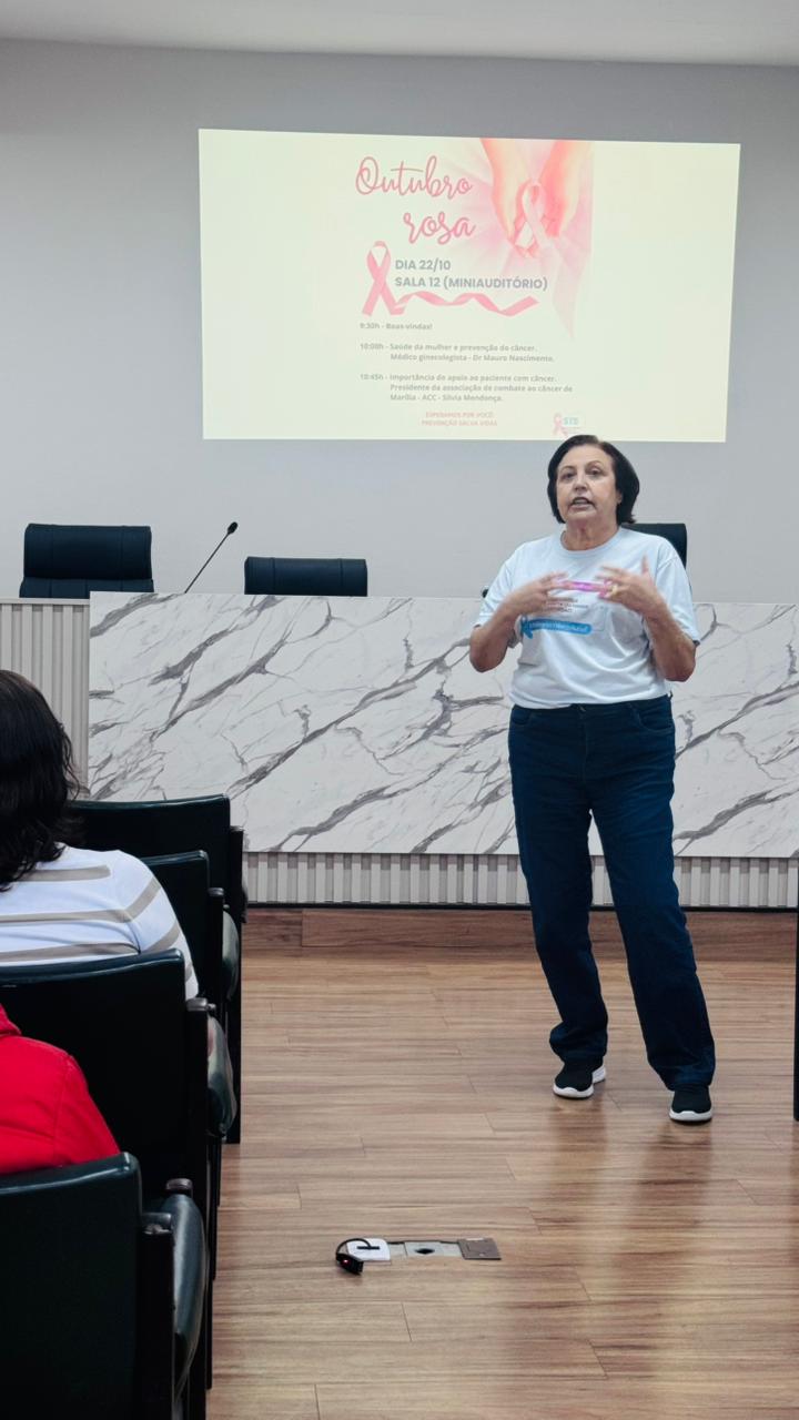 Hoje, dia 22 do mês da prevenção do câncer de mama, Outubro Rosa, participamos da palestra com o Dr. Mauro Nascimento, gineologista na UNESP , campus Marília, voltada para as colaboradoras da Universidade. No segundo painel da palestra a presidente da ACC, Silvia Mendonça, discorreu sobre a importância do apoio ao paciente com câncer. Agradecemos a oportunidade, gratidão sempre!♥