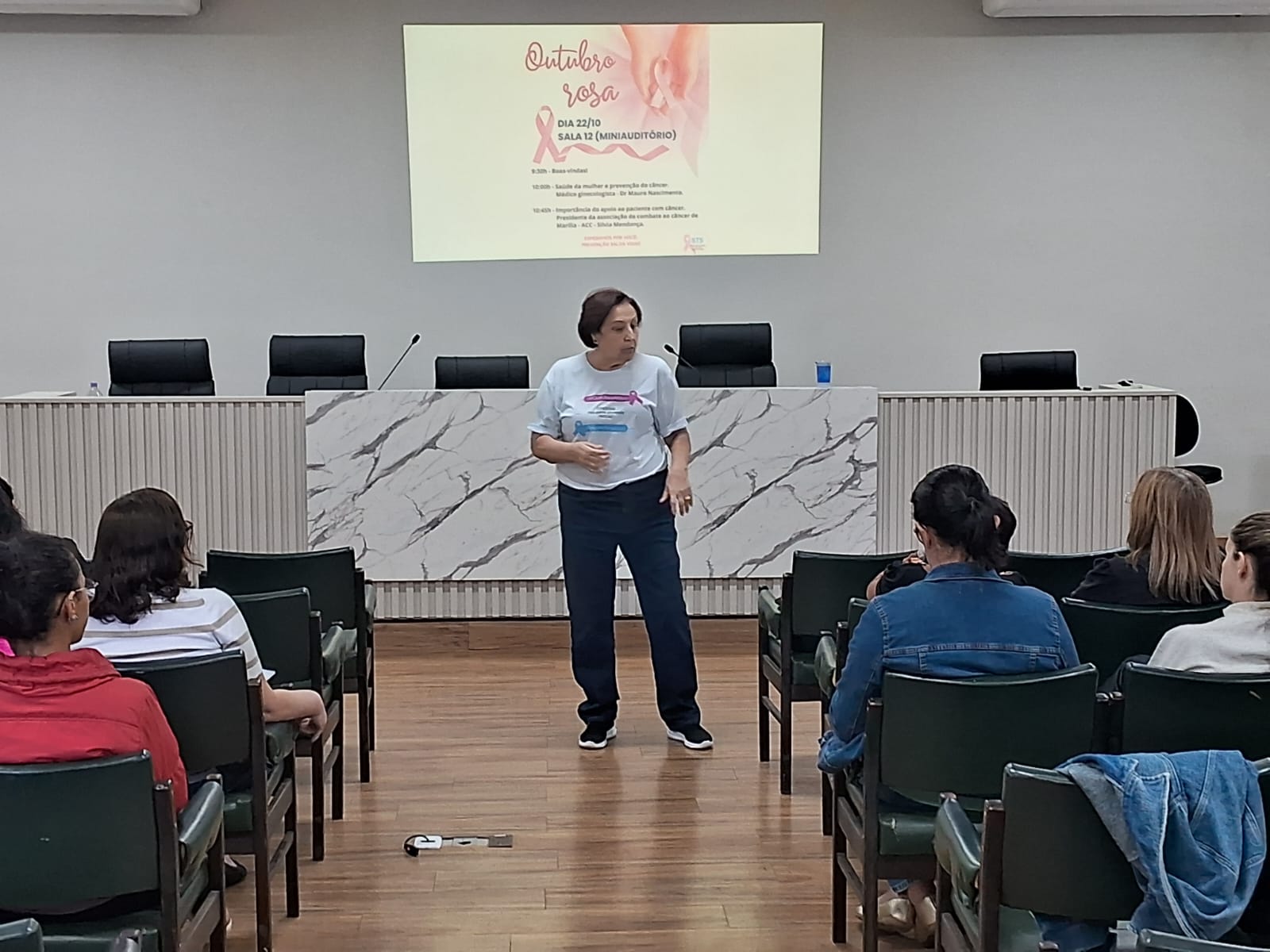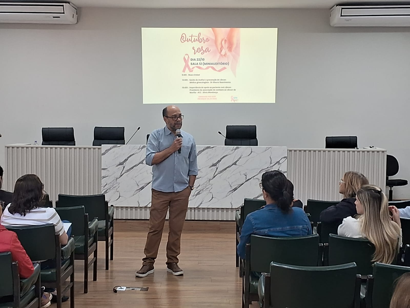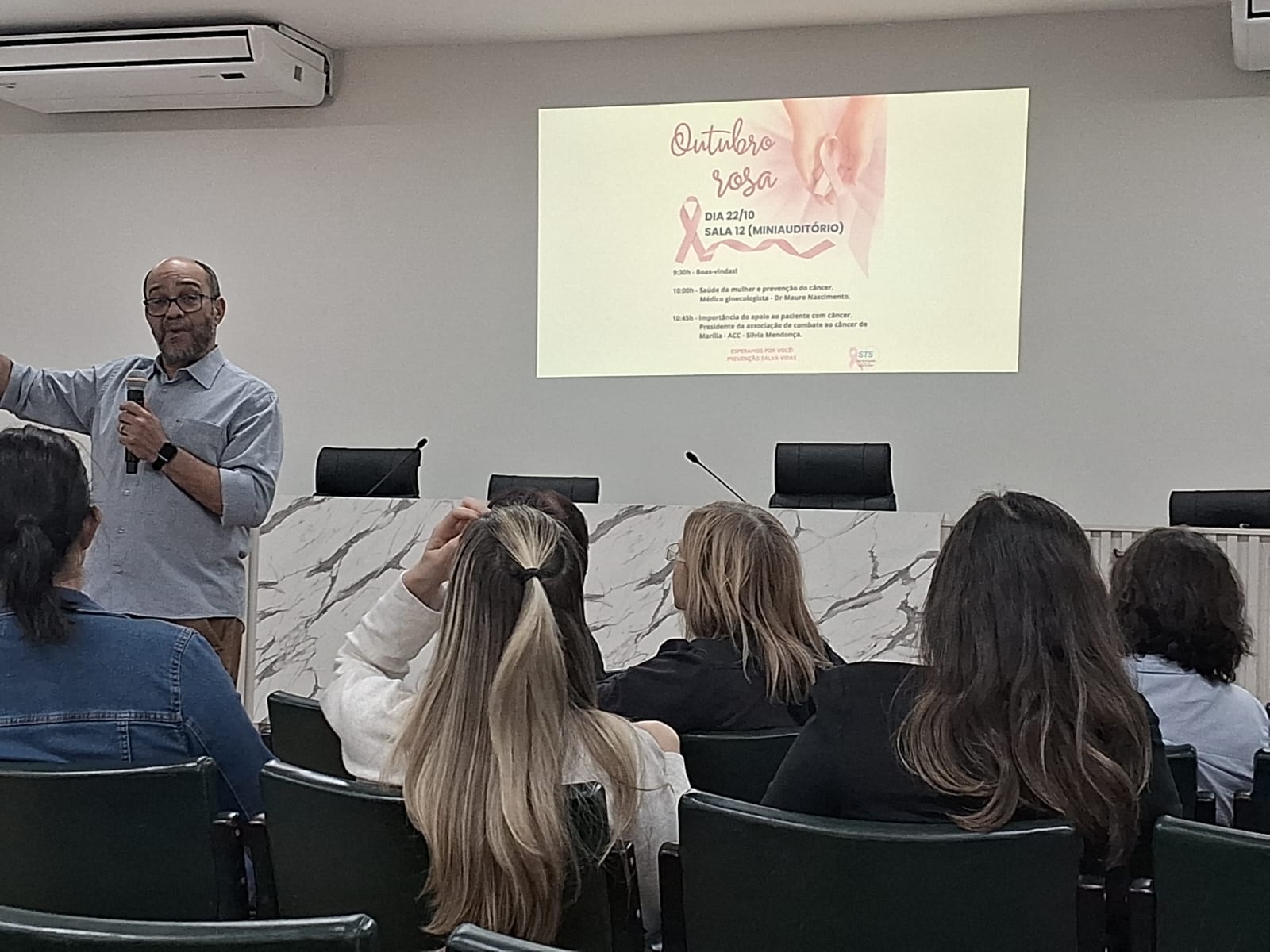 Hoje, dia 22 do mês da prevenção do câncer de mama, Outubro Rosa, participamos da palestra com o Dr. Mauro Nascimento, gineologista na UNESP , campus Marília, voltada para as colaboradoras da Universidade. No segundo painel da palestra a presidente da ACC, Silvia Mendonça, discorreu sobre a importância do apoio ao paciente com câncer. Agradecemos a oportunidade, gratidão sempre!♥